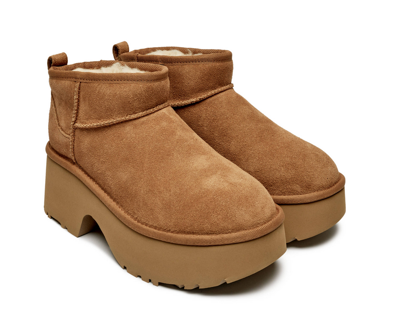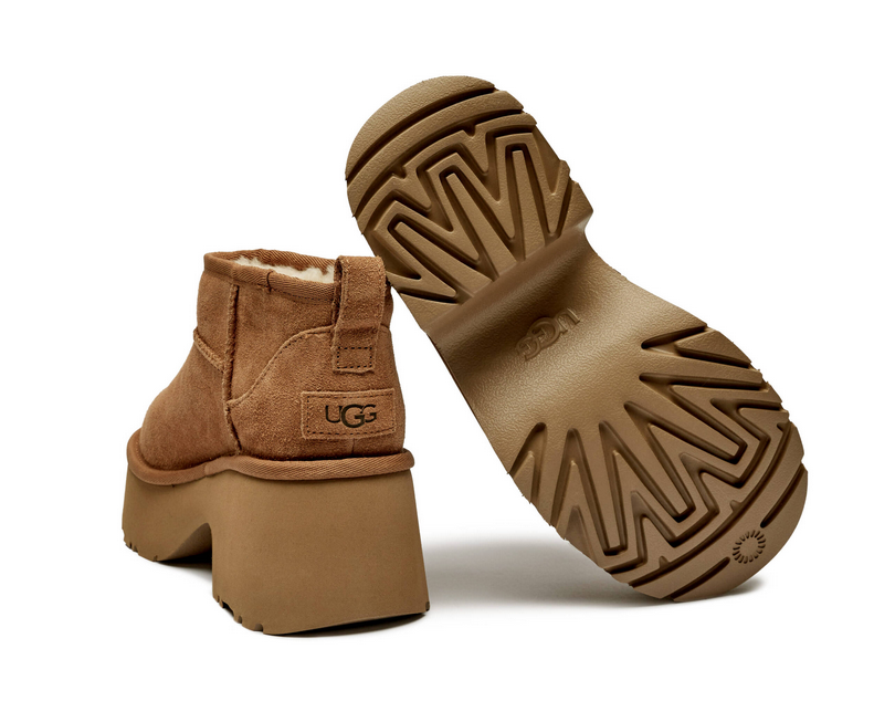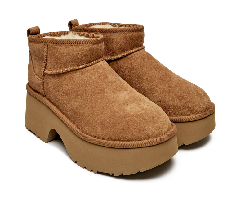 Styl, wygoda i ciepło – to właśnie UGG Classic Ultra Mini New Heights w odcieniu Chestnut. Ten model to współczesna wersja klasycznych śniegowców, które pokochały kobiety na całym świecie. Zamszowa cholewka i obniżony krój nadają im modnego, miejskiego charakteru.